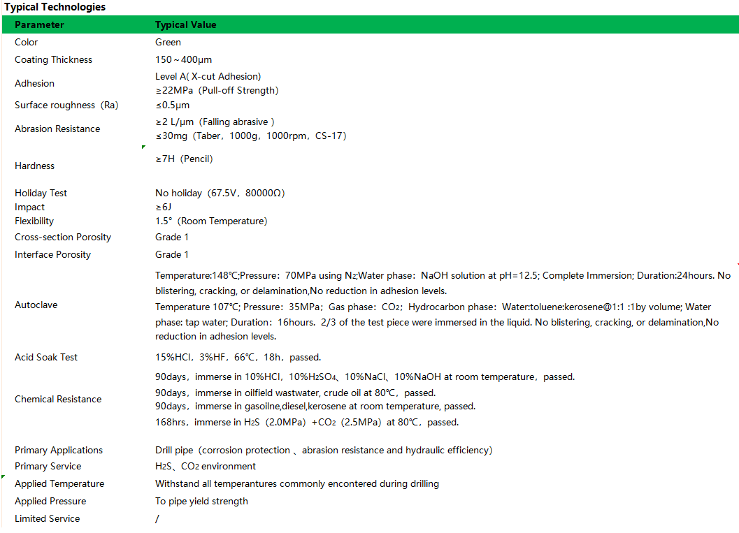 A high-performance powder coating, primarily designed for high-temperature, high-pressure environments containing H?S and CO?.
