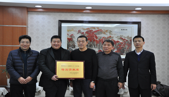(2016年2月3日,上海)2016年2月1日,海隆作為上海市寶山工業園區稅收的最大貢獻者,再次榮獲了上海市寶山工業園區2015年度“特別貢獻獎”。上海市寶山工業園區黨工委書記楊寶康(左三)為海隆授獎,集團執行總裁汪濤代表集團(左二)接受此殊榮。